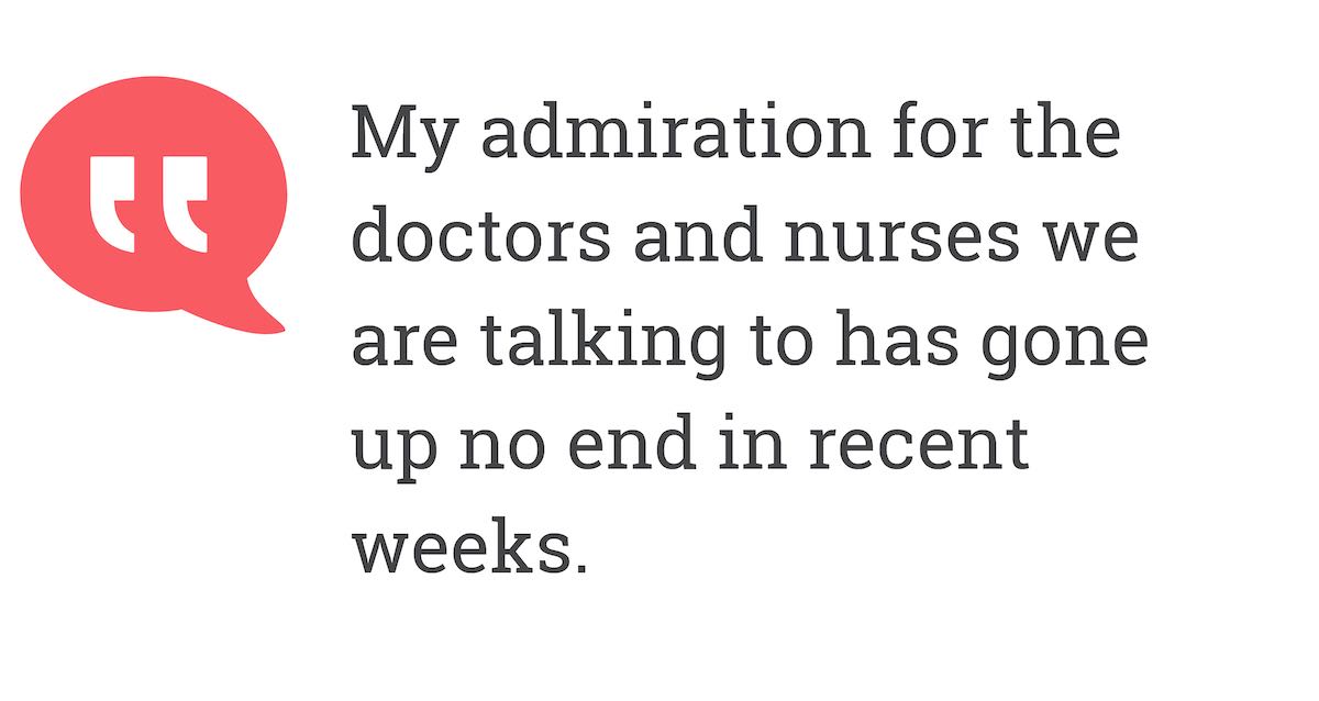 My admiration for the doctors and nurses we are talking to has gone up no end in recent weeks.