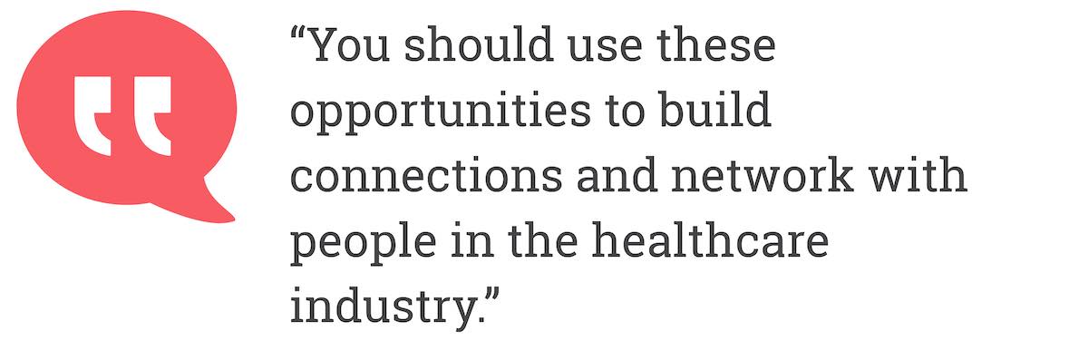 You should use these opportunities to build connections and network with people in the healthcare industry.