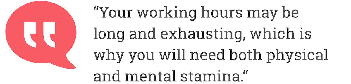 Your working hours may be long and exhausting, which is why you will need both physical and mental stamina.