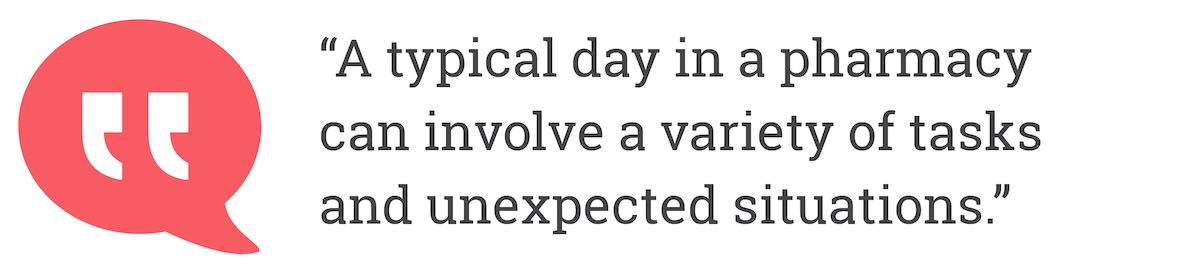 A typical day in a pharmacy can involve a variety of tasks and unexpected situations.