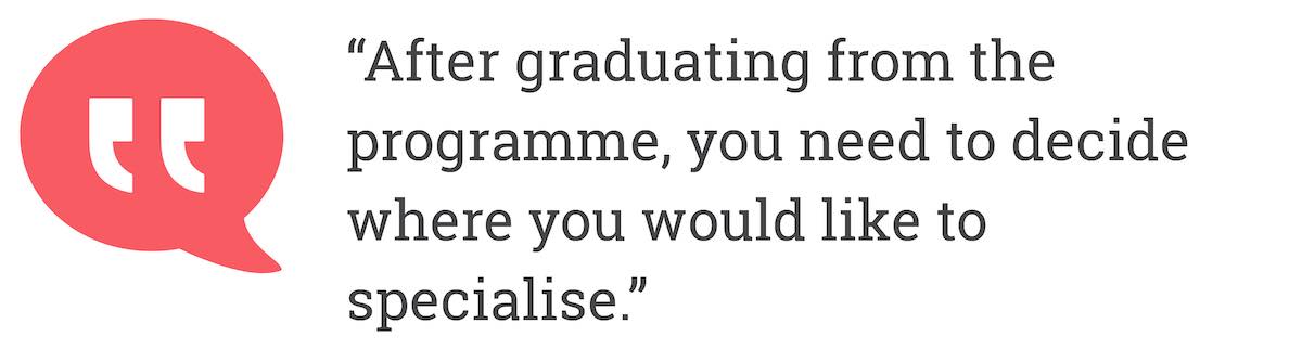 After learning the basics, you can decide to further your education and select a specialisation that interests you.