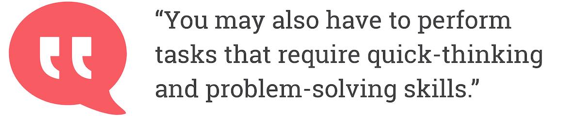 You may also have to perform tasks that require quick-thinking and problem-solving skills.