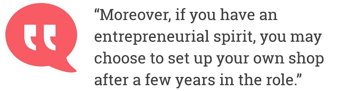 Moreover, if you have an entrepreneurial spirit, you may choose to set up your own shop after a few years in the role.