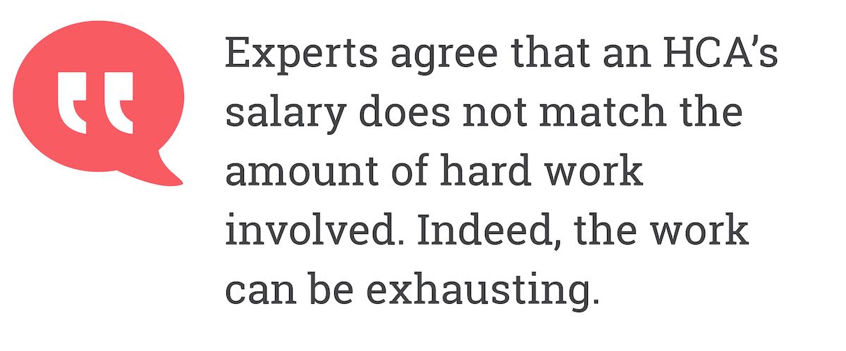 Unfortunately, many industry experts agree that an HCA’s salary does not match the amount of hard work involved.