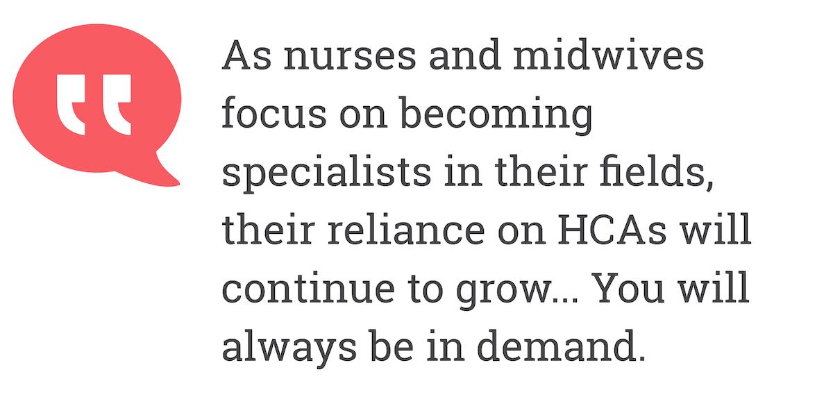 In addition, as more and more nurses and midwives focus on becoming specialists in their fields, their reliance on HCAs will continue to grow.
